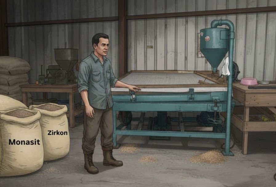 Informasi yang dihimpun, gudang milik Pak Sumin ini diduga menyimpan jenis mineral Monasit dan Zirkon. Dugaan ini menjadi perhatian serius karena kedua mineral tersebut termasuk bahan tambang yang memiliki nilai ekonomi tinggi dan pengelolaannya harus melalui izin resmi.